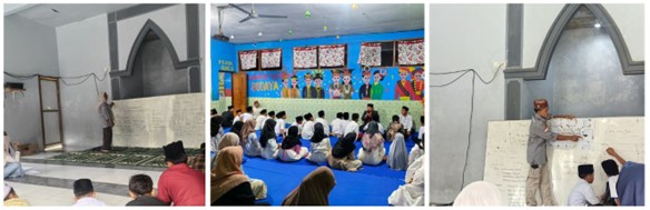 Antusiasme peserta terlihat saat sesi tanya jawab berlangsung. Banyak siswa dan santri yang aktif menjawab pertanyaan dan mengikuti setiap kegiatan yang diberikan oleh mahasiswa.