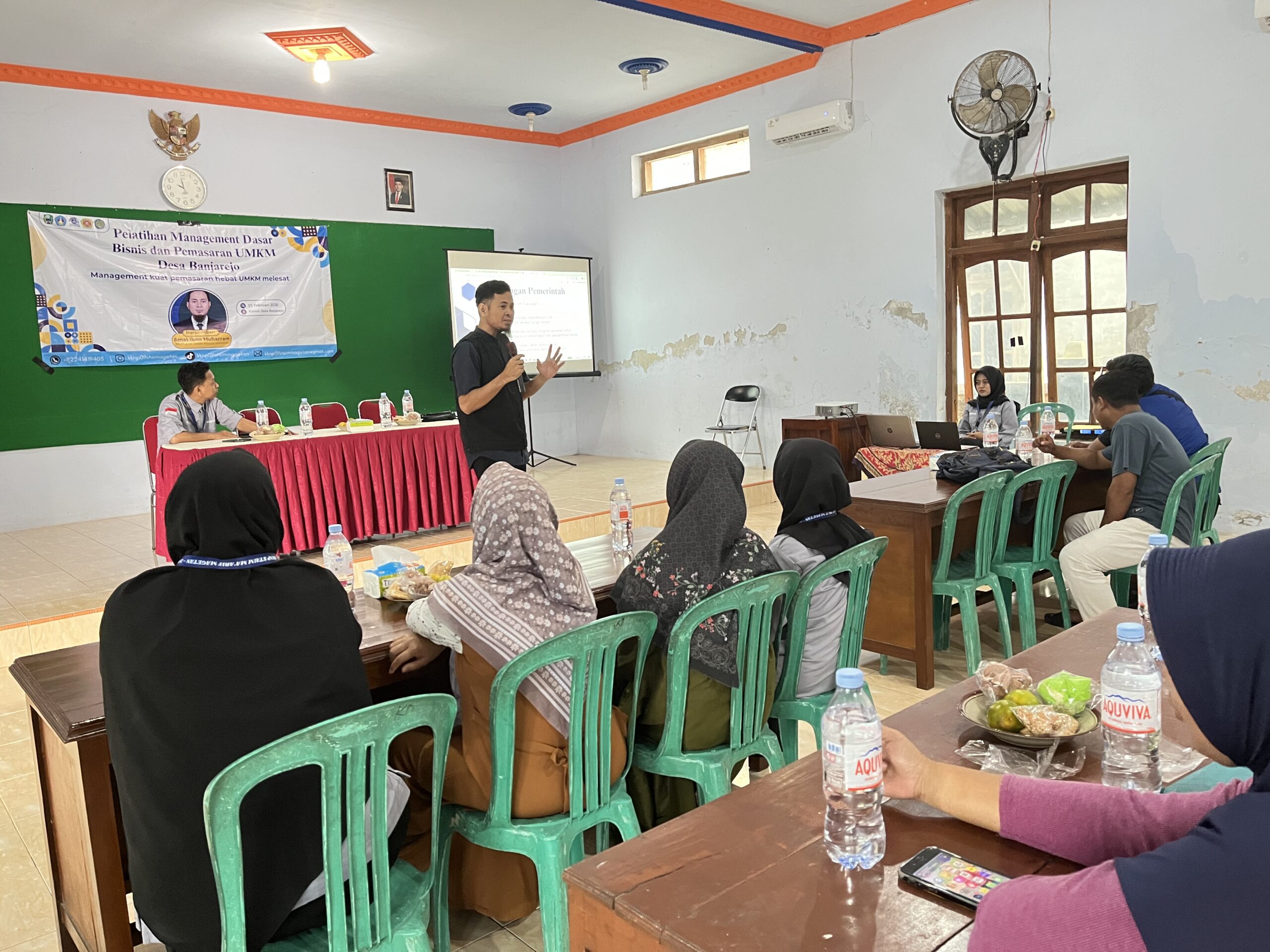 Materi pelatihan disampaikan oleh Amal Ibnu Muharram, S.H., yang membahas manajemen dasar usaha, strategi branding, serta pemanfaatan media sosial dan e-commerce sebagai sarana promosi. Peserta juga mengikuti praktik pembuatan akun bisnis dan simulasi promosi produk lokal Desa Banjarejo.